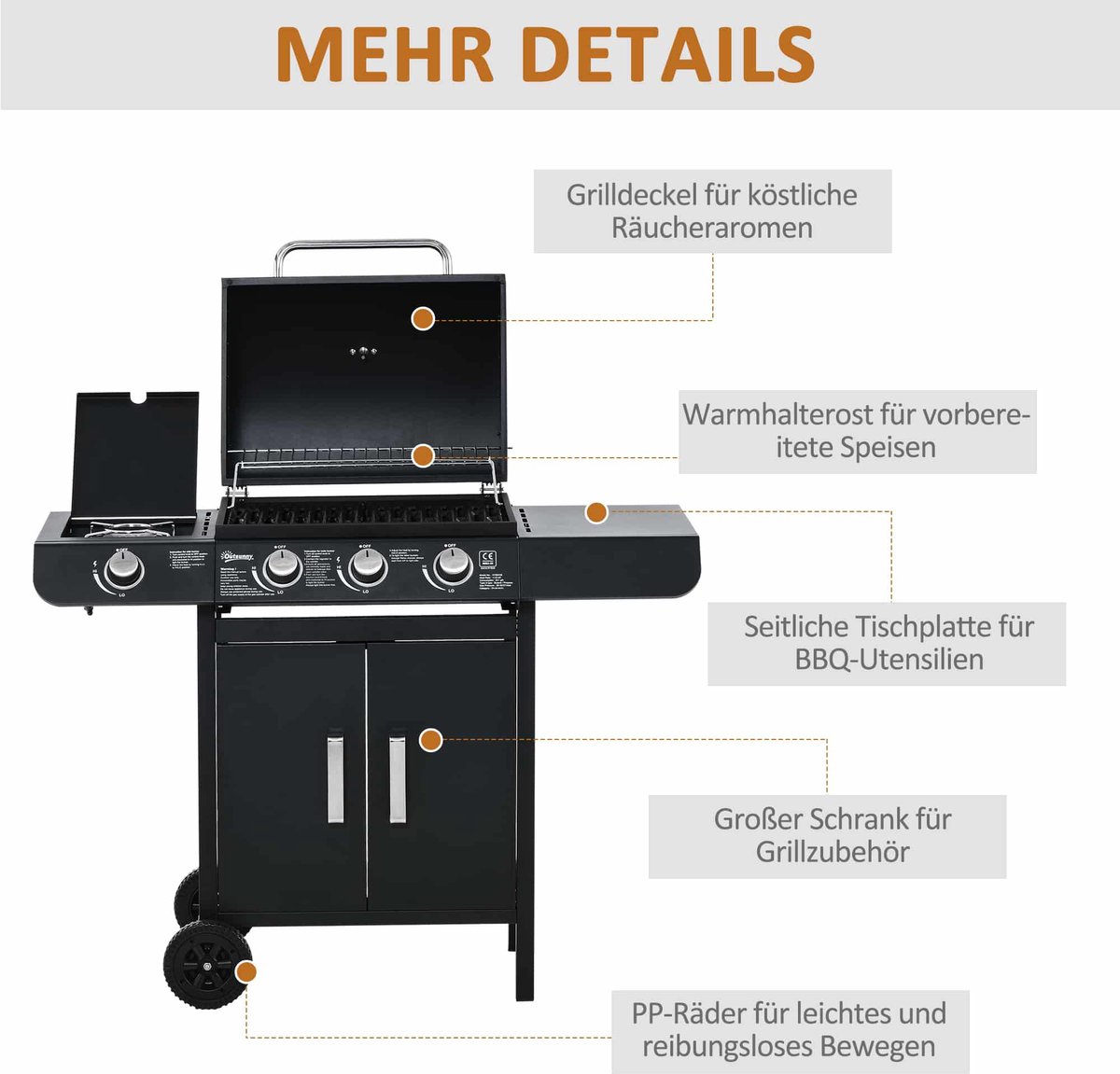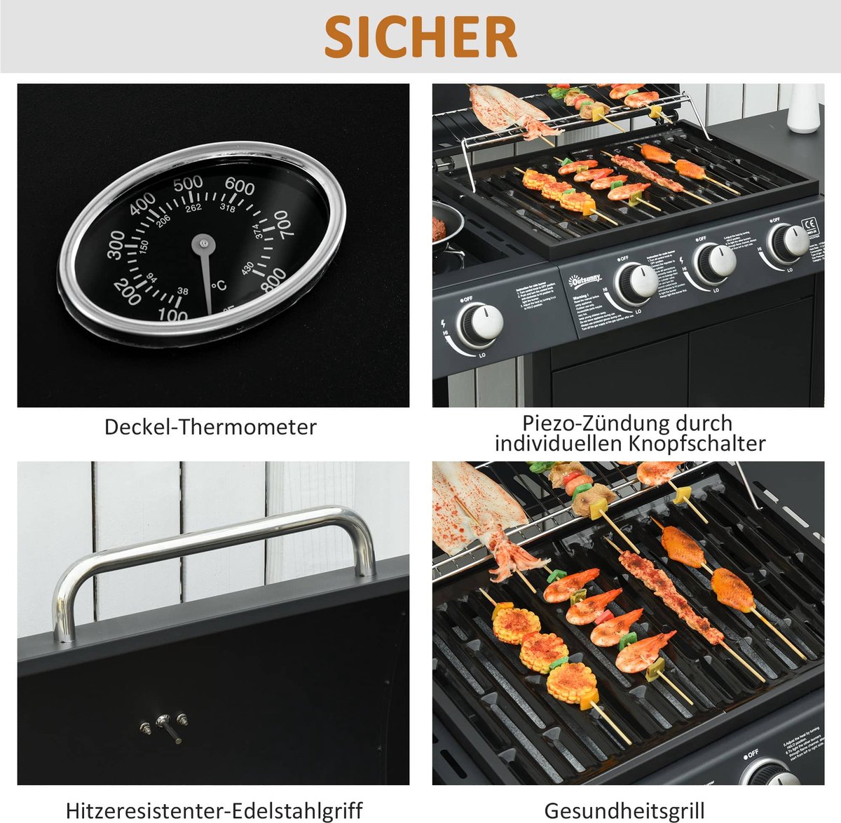 Met zijn strakke zwarte uitstraling past deze gasbarbecue perfect bij elke tuin of terras. Of je nu een uitgebreide barbecueparty plant of gewoon snel even iets wilt grillen, deze krachtige en stijlvolle barbecue is jouw ideale partner.
