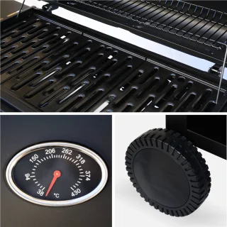 - Gebruiksgemak: Elektronische piezo-ontsteking voor direct aansteken, verwijderbare vetopvangbak voor eenvoudige schoonmaak en een geïntegreerde thermometer voor optimale controle.