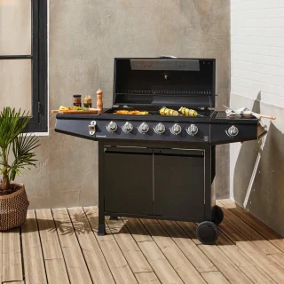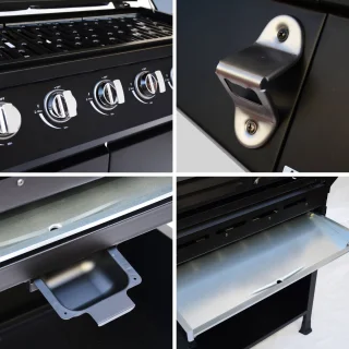 - Veelzijdigheid: 6 hoofbranders voor grote grilloppervlakken en een aparte zijbrander (gaspit) om sauzen te verwarmen of bijgerechten te bereiden.